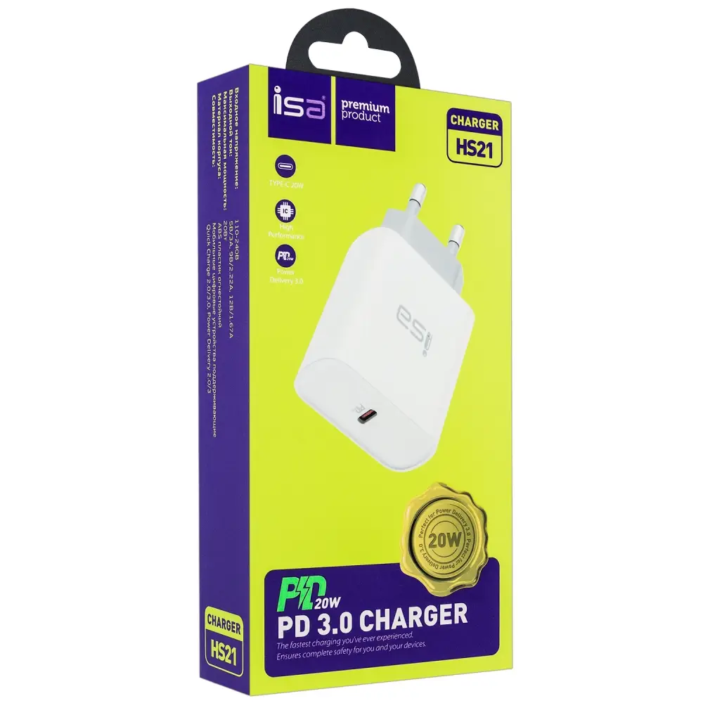 Переходник СЗУ HS21 на Type-C PD20W ISA белый