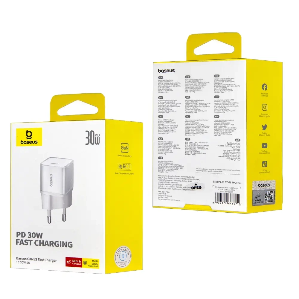 Переходник СЗУ на Type-C 30W GAN5S P10162504213-00 Baseus белый