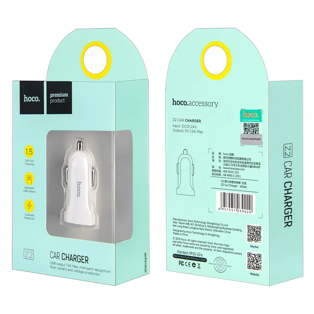Переходник Z2 АЗУ на USB 1.5A HOCO белый
