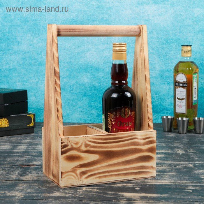 Переноска для 2 бутылок с деревянной ручкой, 21х11,5х30,5 см, экзотик