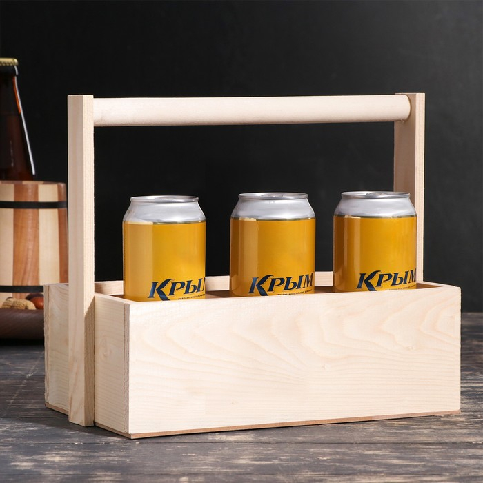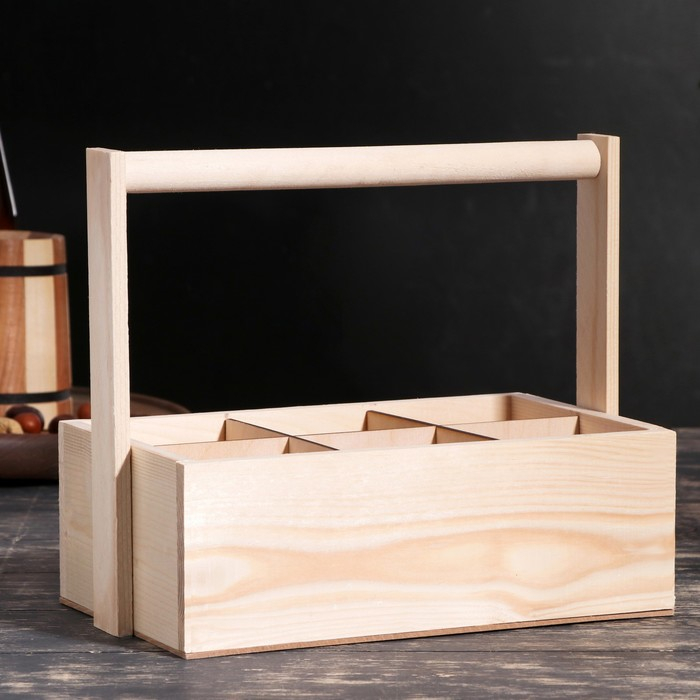Переноска для 6 бутылок с деревянной ручкой, 28х19х25см, натуральная