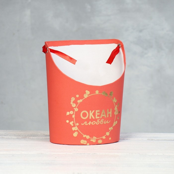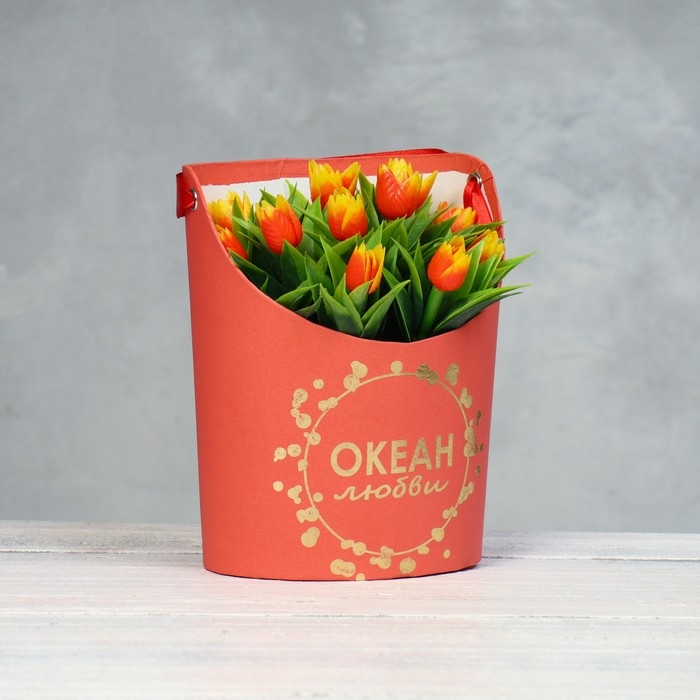 Переноска для цветов, ваза Овал с тиснением "Океан любви", красная 12,5 х 13,5 х 18 см