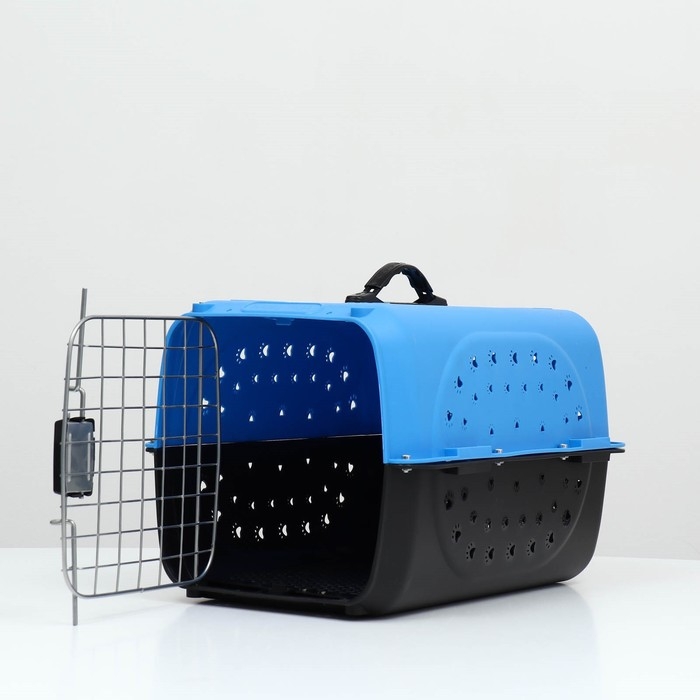 Переноска для животных пластиковая с металлической дверью 47 х 30 х 35 см, вес до 12 кг, голубая 9