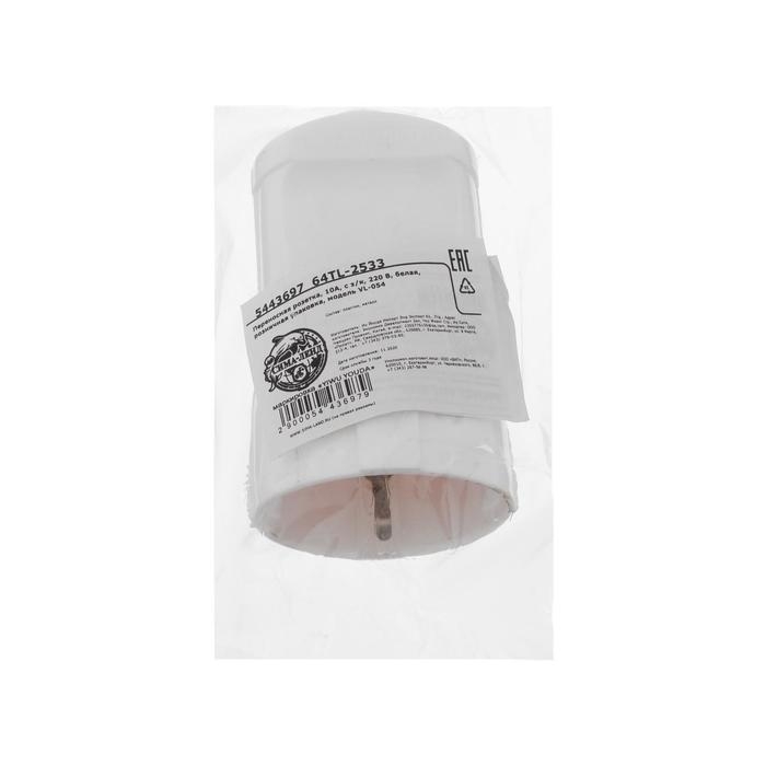 Переносная розетка, 10А, с з/к, 220 В, белая, розничная упаковка