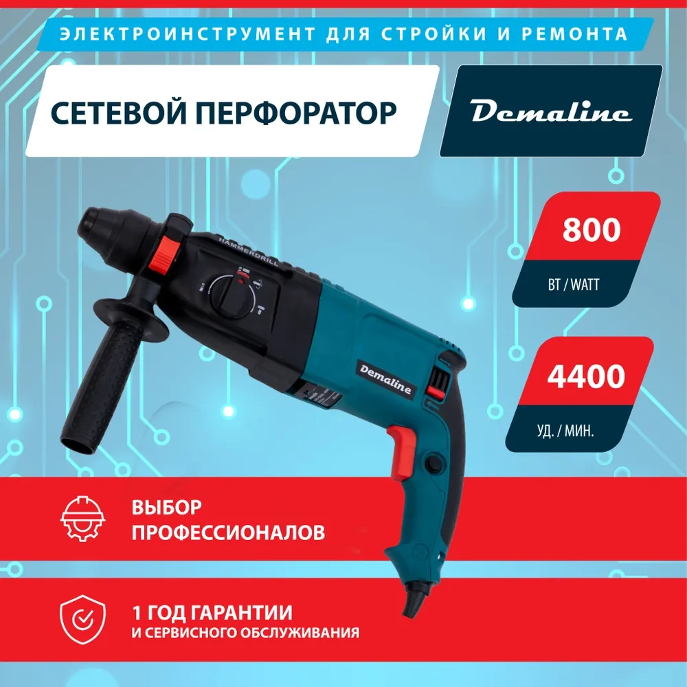 Перфоратор Demaline сетевой 800 Вт, 4400 уд/мин, 3 режима