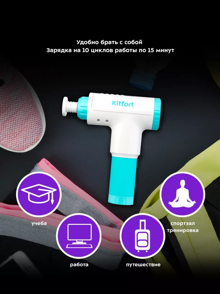 Перкуссионный (ударный) массажер Kitfort KT-2927 поможет избавиться от мышечной усталости, боли, спазмов и ограниченной подвижности.