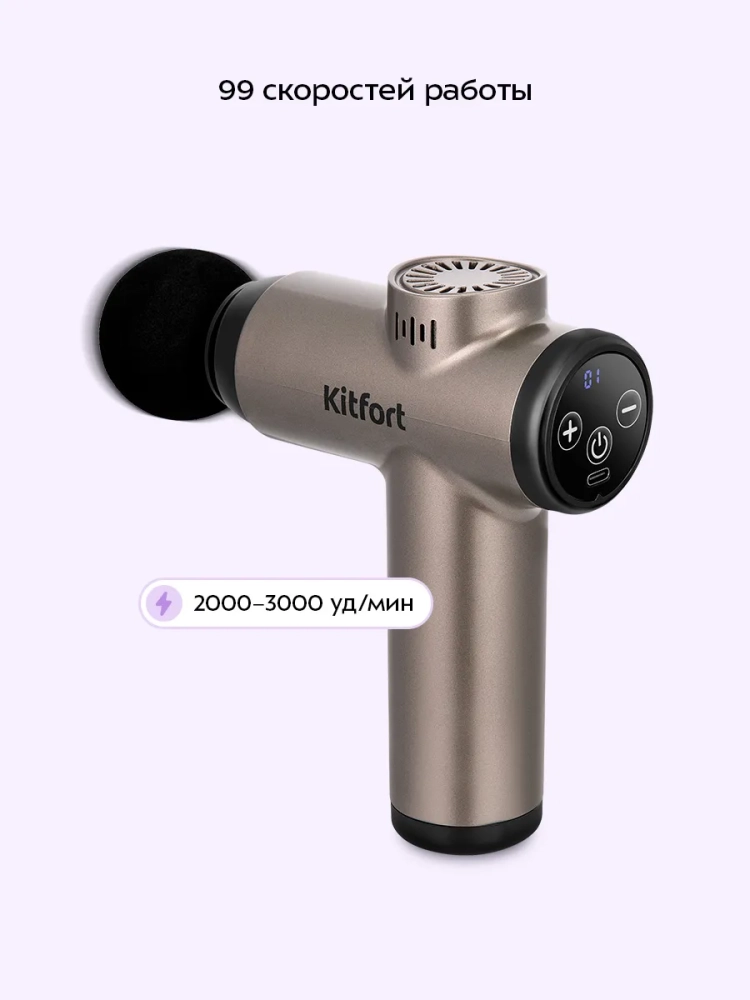 Перкуссионный (ударный) массажер Kitfort KT-5931 поможет избавиться от мышечной усталости, боли и спазмов.