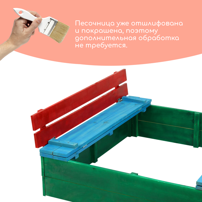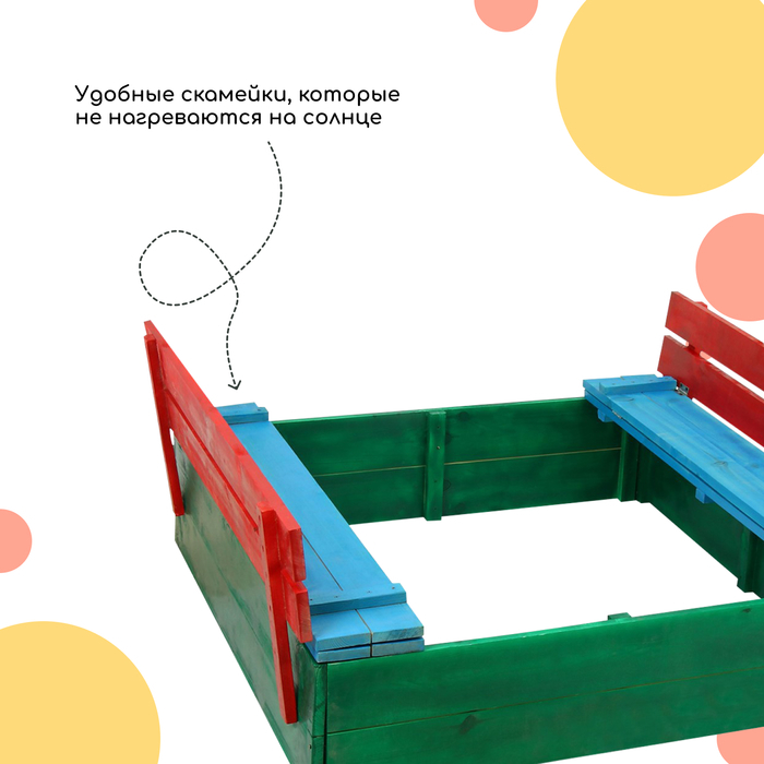 Песочница деревянная, с крышкой, 130 × 130 × 52 см, сосна, крашеная