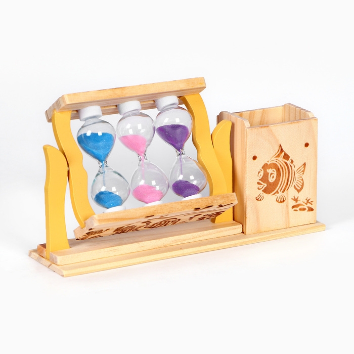 Необычные песочные часы – лучший способ декорировать интерьер комнаты или офиса. Изготовленные из стекла, пластика и декоративного песка, эти часы подойдут под любой интерьер. Отличный вариант на подарок для нее и для него. А также любимой женщине, коллеге, маме и бабушке. Песочные часы оснащены карандашницей, благодаря чему их можно хранить на рабочем столе с целью хранения в нём канцелярии. Глядя на движение разноцветных песчинок вы постепенно будете чувствовать как проходит ваша тревога и стресс. Стилизованные песочные часы состоят из двух сосудов, соединённых узкой горловиной, один из которых частично заполнен песком.