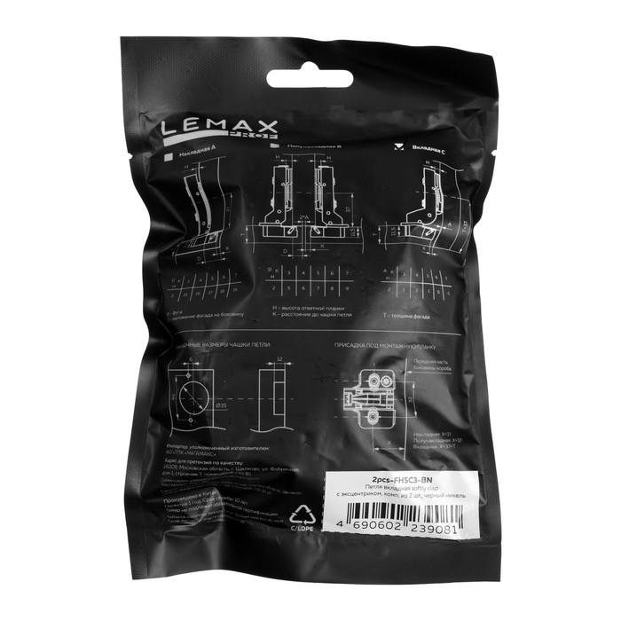Петля вкладная с эксцентриком softly clap , цвет черный никель, 2шт.