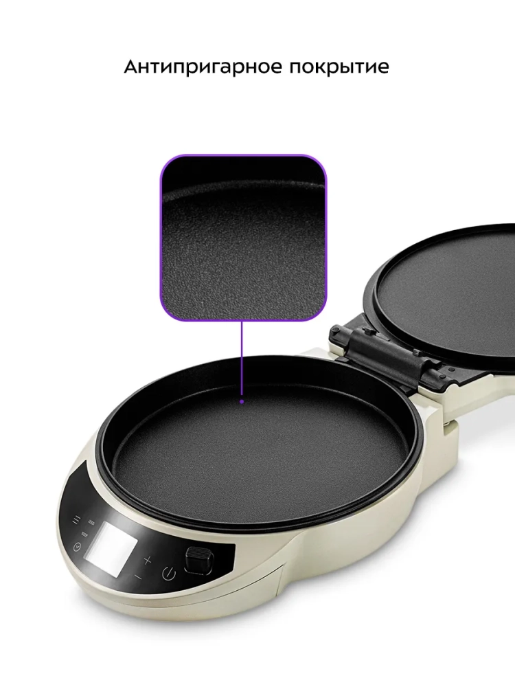 Антипригарное покрытие помогает не прилипать тесту и другим продуктам в процессе приготовления и позволяет готовить с минимальным количеством масла. Также антипригарное покрытие панелей облегчает чистку.