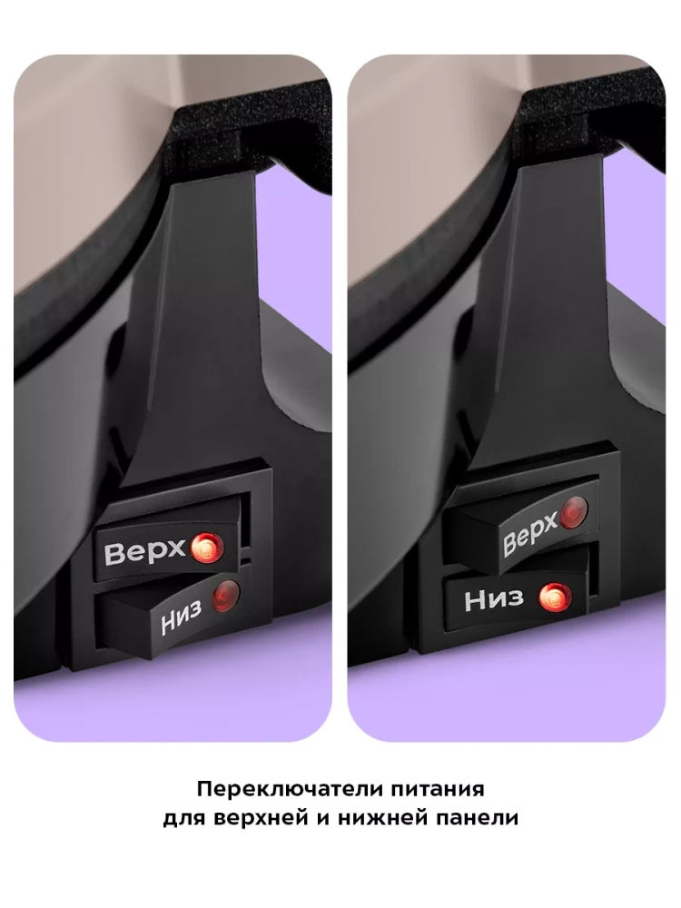 За счет небольшого пространства между панелями и нагревательных элементов в обеих панелях нагрев происходит быстро и равномерно. Поэтому блюда не пригорают снизу или сверху и хорошо пропекаются внутри. Благодаря равномерному нагреву пицца получается сочной со слегка хрустящей корочкой.