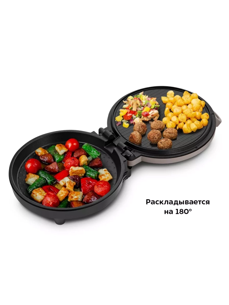 Конструкция пиццамейкера позволяет готовить в двух режимах. В двухстороннем режиме прибор закрывается крышкой. В одностороннем режиме верхняя панель откидывается на 180 °, и пиццамейкер превращается в большую жаровню — для приготовления можно использовать обе панели.