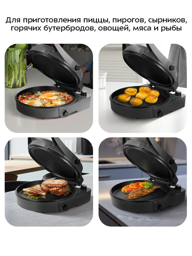 Пиццамейкер Kitfort KT-4637 идеально подходит для приготовления пиццы, различных пирогов, сырников, горячих бутербродов и запеканок. Также в пиццамейкере можно готовить омлет, запеченные овощи, котлеты, мясо, рыбу и многое другое.