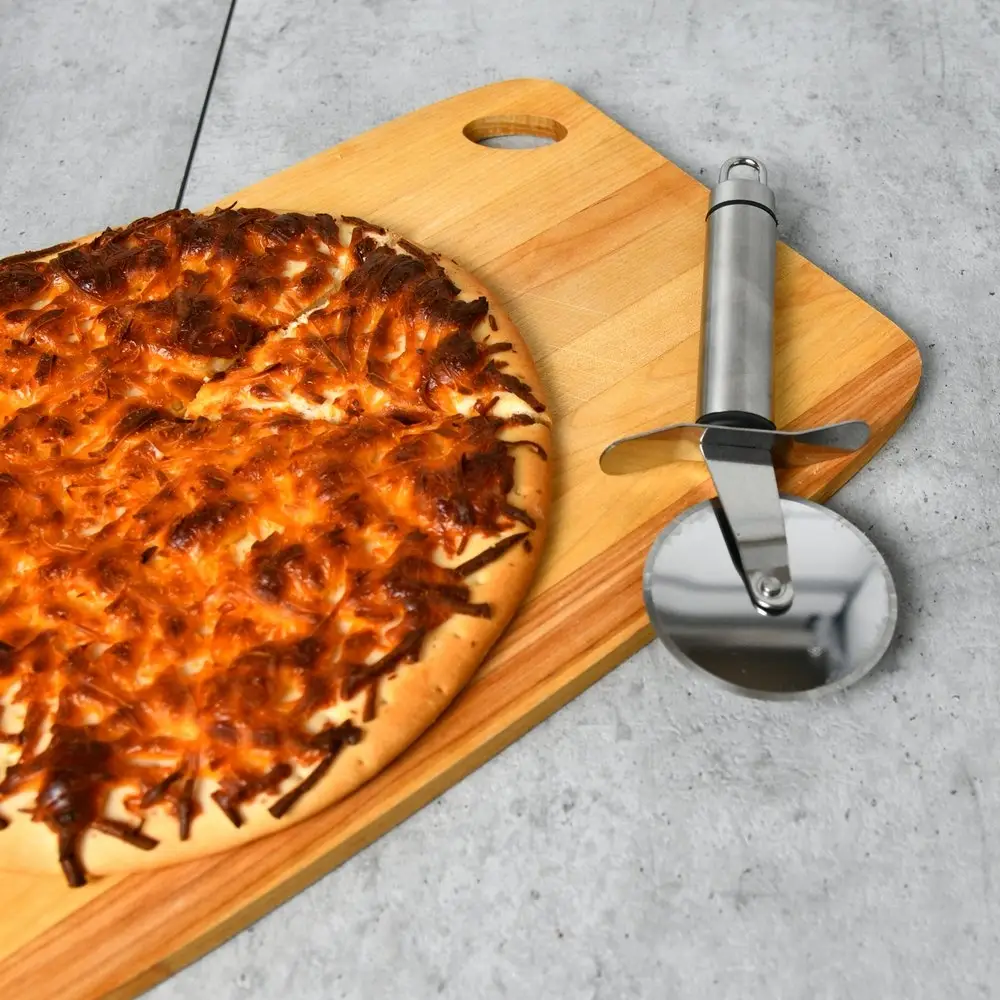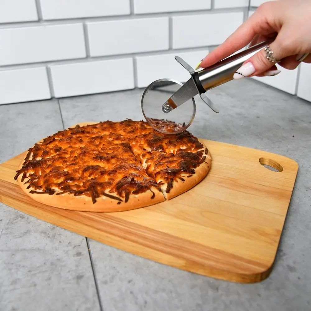 Для разрезания пиццы, теста для пельменей и чебуреков используйте дисковую пиццерезку «Премьера». Этот нож отлично справляется тонким тестом, имеет удобную конструкцию и хорошо лежит в руке. При разрезании пиццы, главное сохранить внешний вид блюда, не размазав сыр и начинку, поэтому пиццерезка — оптимальный вариант для итальянского лакомства. Модель выполнена из нержавеющей стали, а также оснащена специальной петелькой для сушки и хранения. После использования промойте изделие с жидкими моющими средствами и высушите.