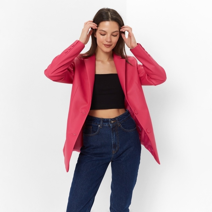 Пиджак женский (экокожа) MINAKU: Eco leather, цвет фуксия, размер 46