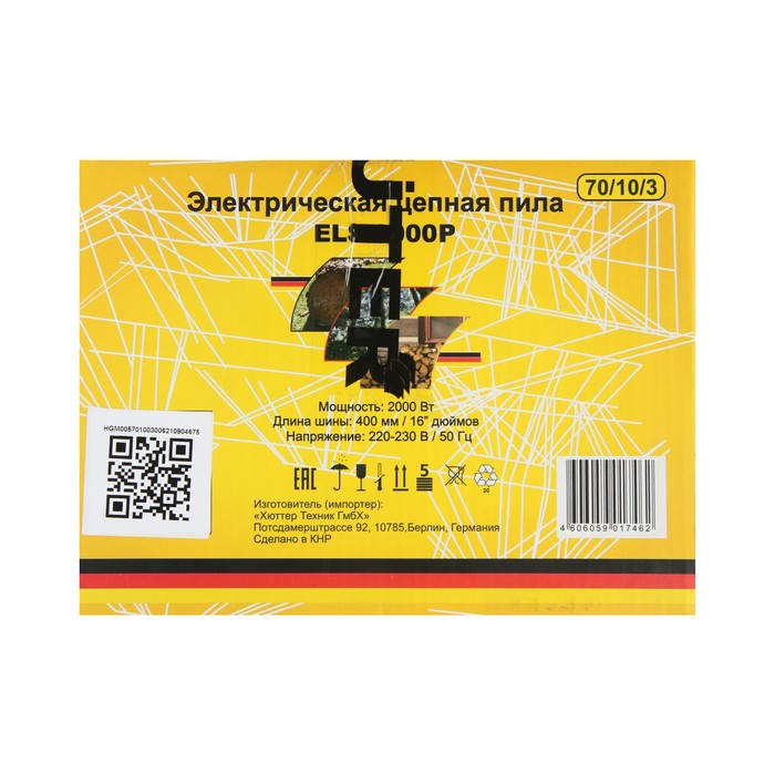Пила цепная Huter ELS-2000P, электрическая, 2000 Вт, 16", шаг 3/8", 1.3 мм, 57 зв.