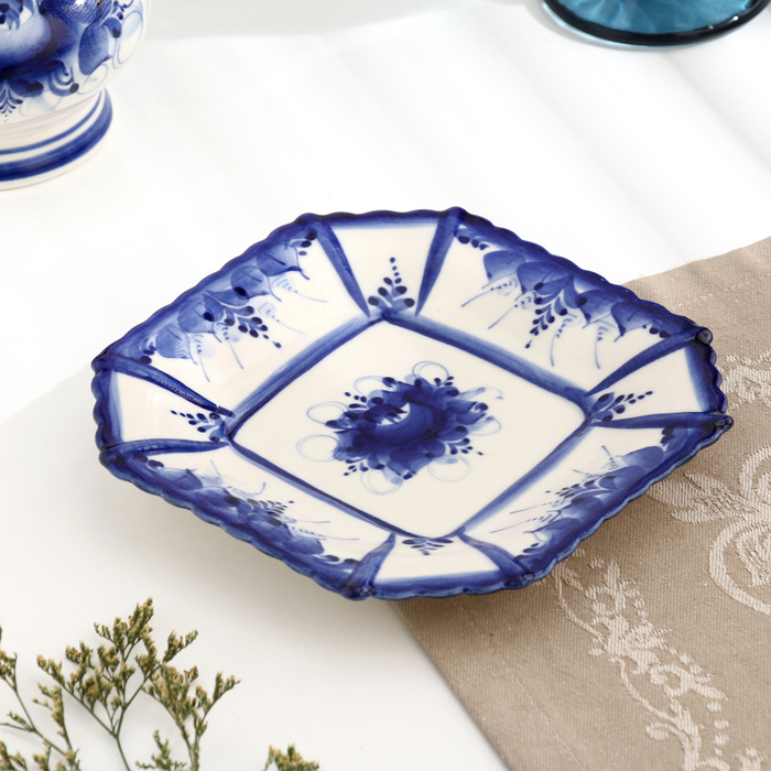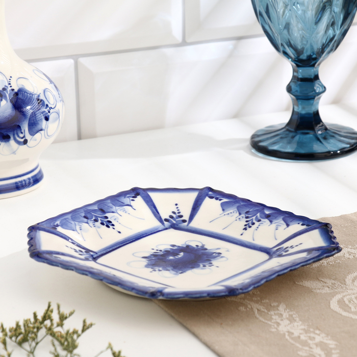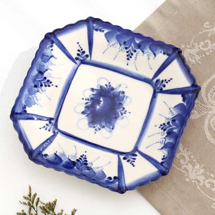 Пирожковая тарелка большая, гжель, фарфор, d=17 см