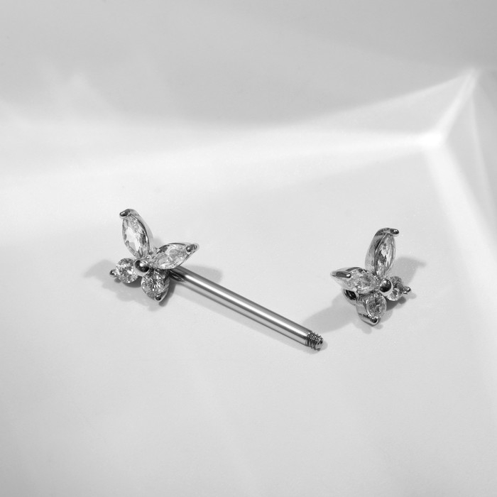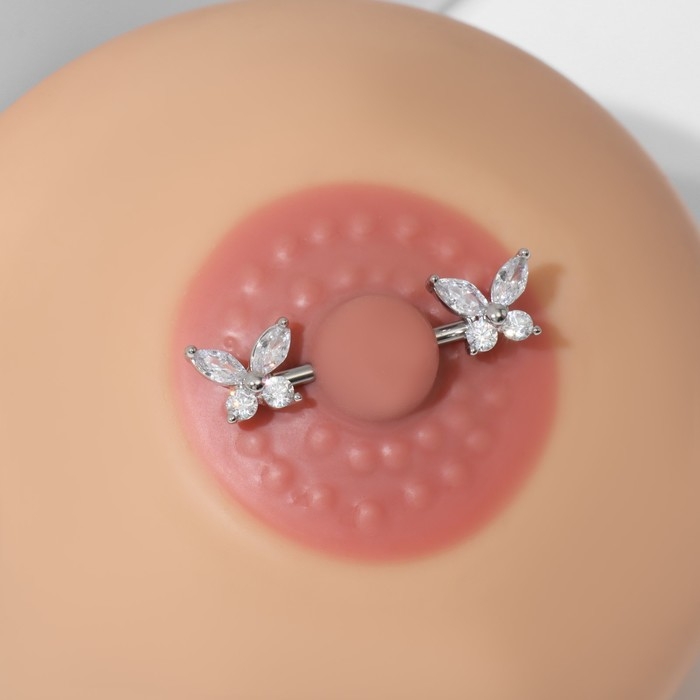 Пирсинг для груди «Бабочки», цвет белый в серебре