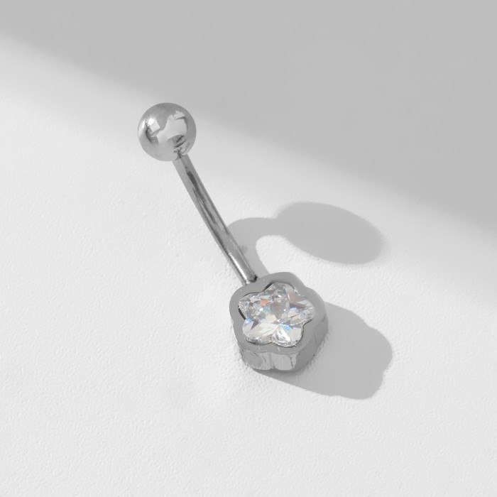 Пирсинг в пупок «Цветок» мини, штанга L=1 см, цвет белый в серебре