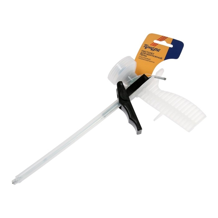 Пистолет для монтажной пены ТУНДРА, пластиковый, прозрачный корпус