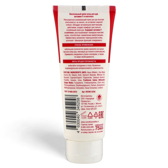 Насыщенный ухаживающий крем для рук, быстро впитывается, не липнет, не оставляет жирной плёнки. Обладает мгновенным смягчающим действием, создает комфорт для сильно огрубевшей кожи рук. Содержит витамин F и пантенол, восстанавливает липидную мантию кожи, способствует заживлению микротрещин. Эффективно увлажняет пересушенную кожу, улучшает барьерную функцию эпидермиса.