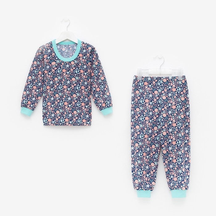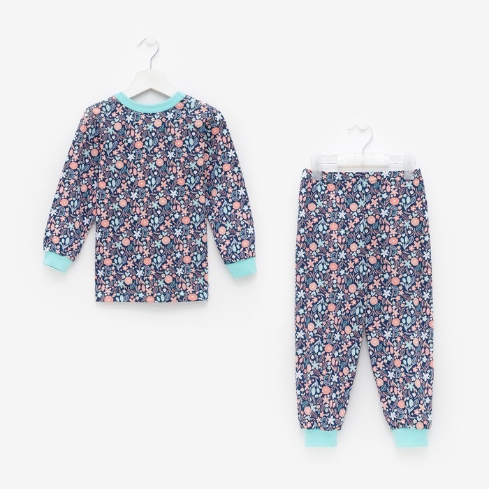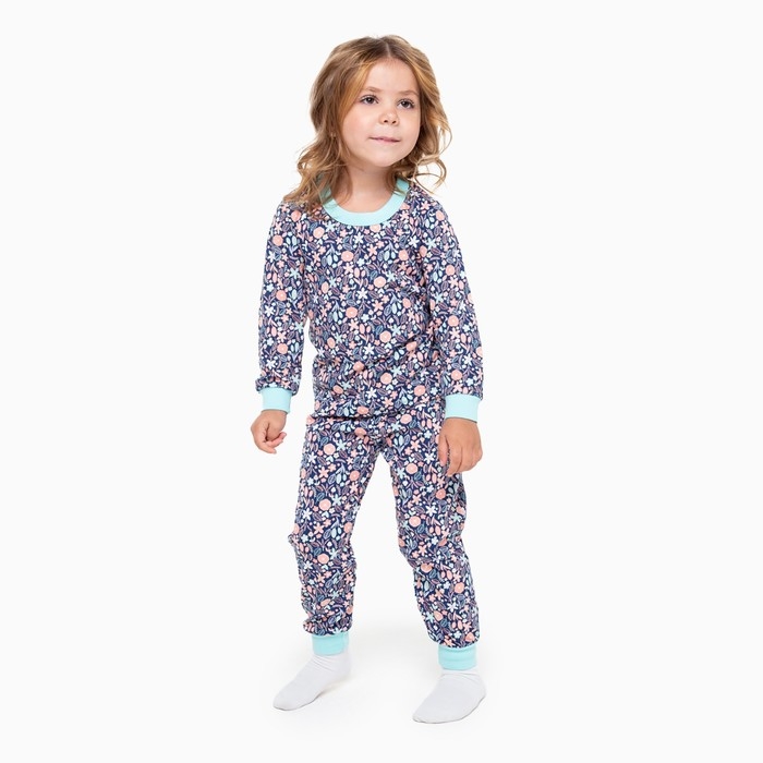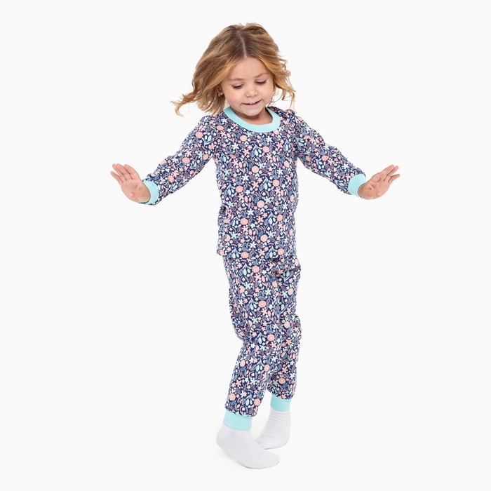 Пижама для девочки, цвет синий/листья, рост 92 см