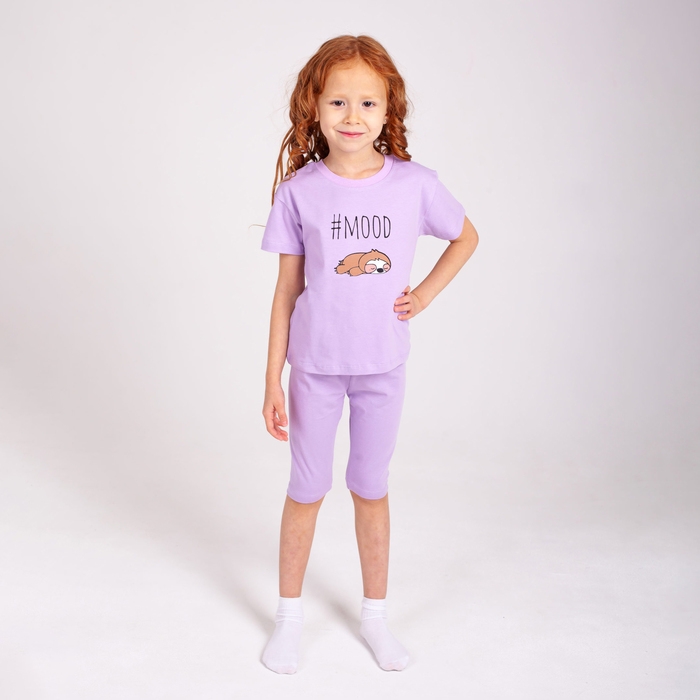 Пижама для девочки (футболка/шорты), цвет сиреневый, рост 104 см