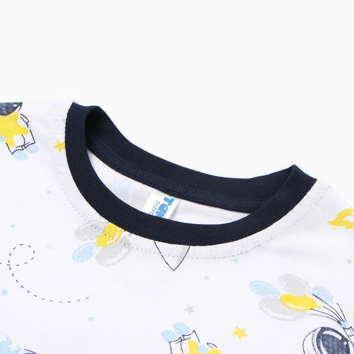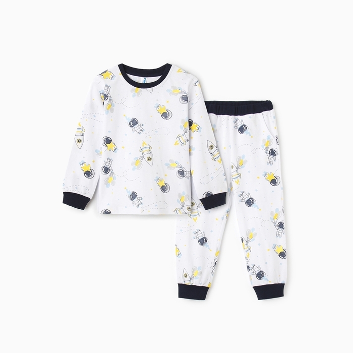 Пижама для мальчика (лонгслив/брюки), цвет белый/космонавты, рост 110 см