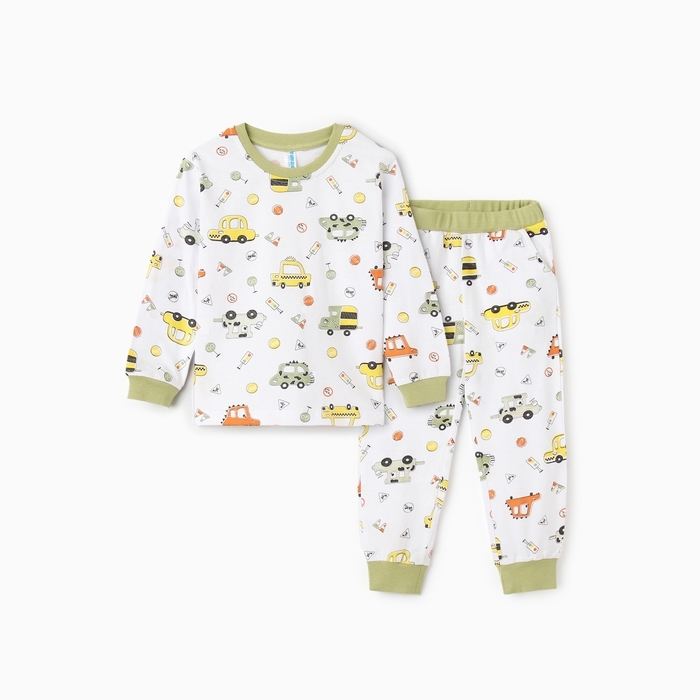 Пижама для мальчика (лонгслив/брюки), цвет белый/машины, рост 92 см