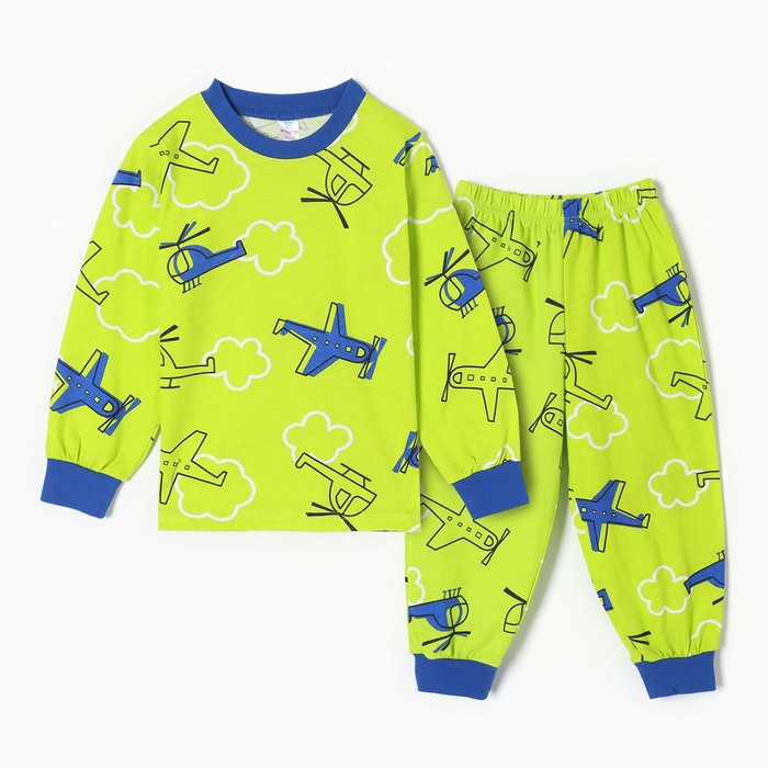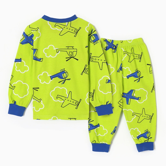 Пижама для мальчиков, цвет зелёный/самолетики, рост 92 см