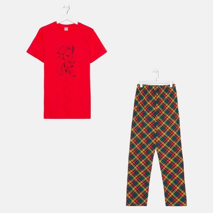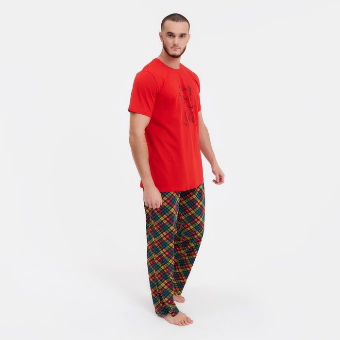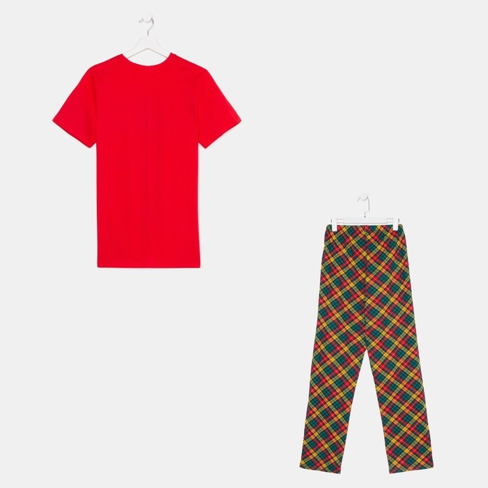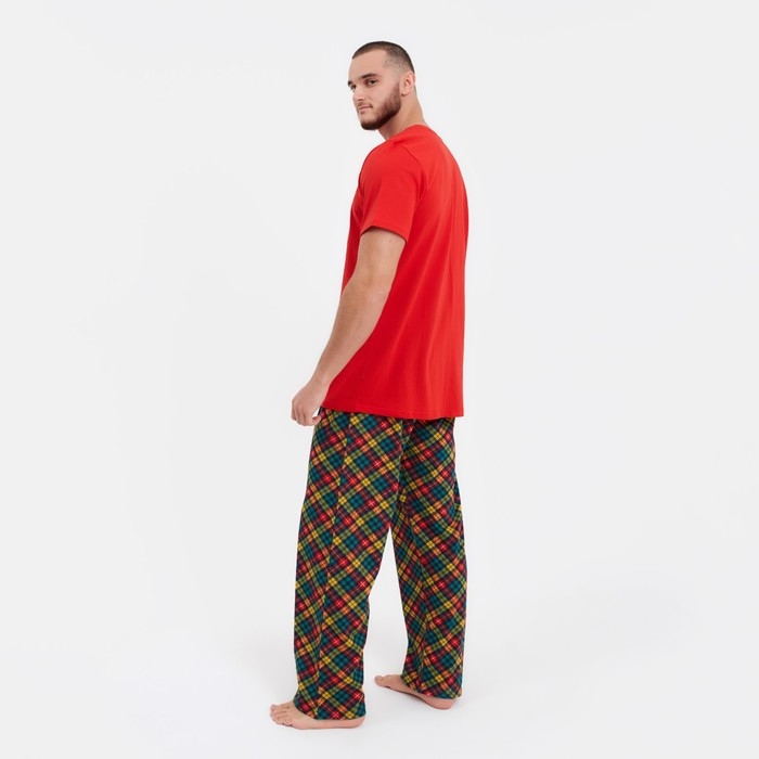 Пижама мужская (футб/брюки), цвет красный/клетка, р-р 46