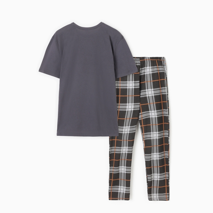 Пижама мужская (футболка/брюки), цвет тёмно-серый, размер 50