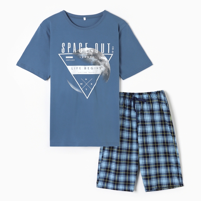 Пижама мужская (футболка/шорты), цвет серо-голубой, размер 50