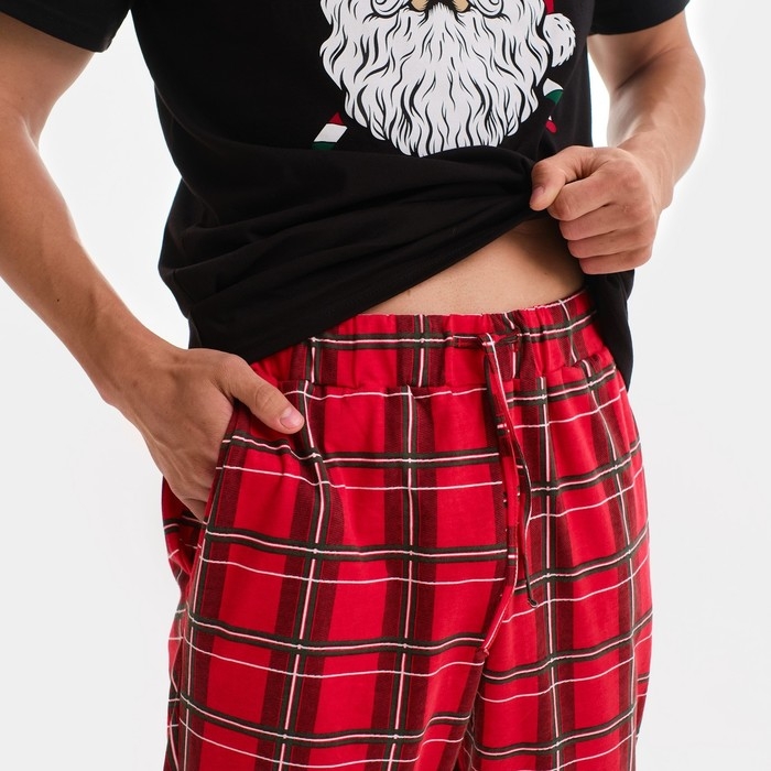Пижама новогодняя мужская KAFTAN "Дед Мороз", цвет красный/чёрный, размер 48