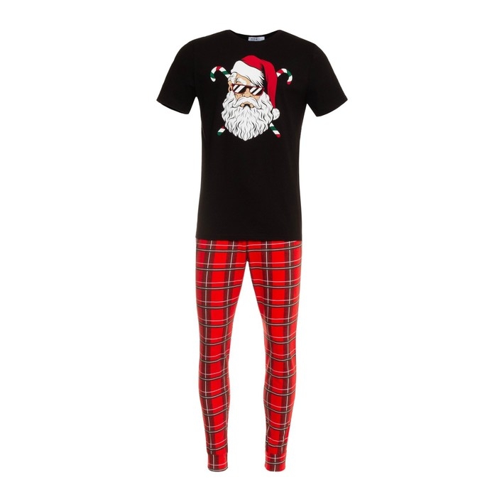 Пижама новогодняя мужская KAFTAN "Дед Мороз", цвет красный/чёрный, размер 54
