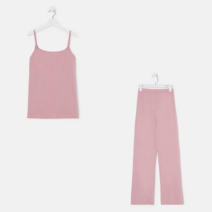 Пижама женская (майка, брюки) цвет пудра, размер 48