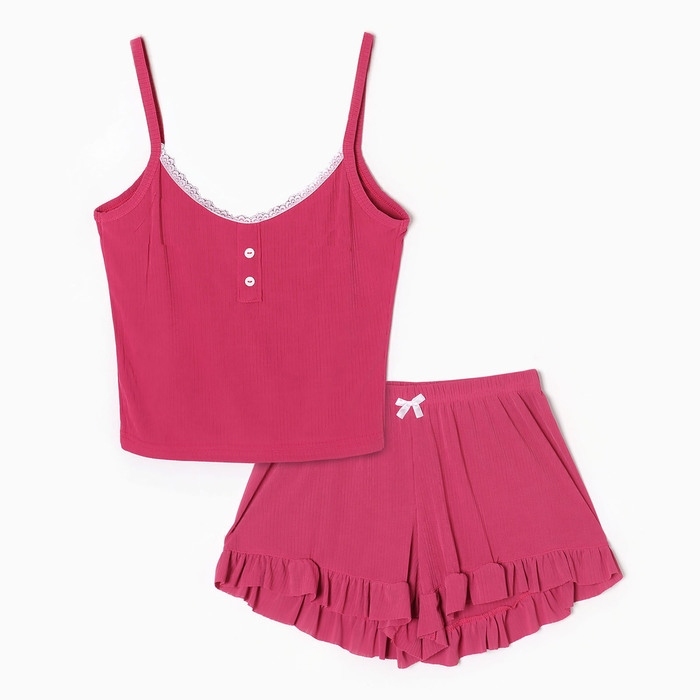 Пижама женская (топ/шорты), цвет розовый, размер 48