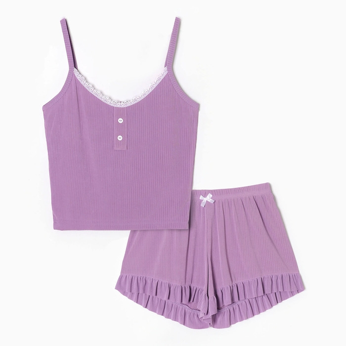 Пижама женская (топ/шорты), цвет сирень, размер 52