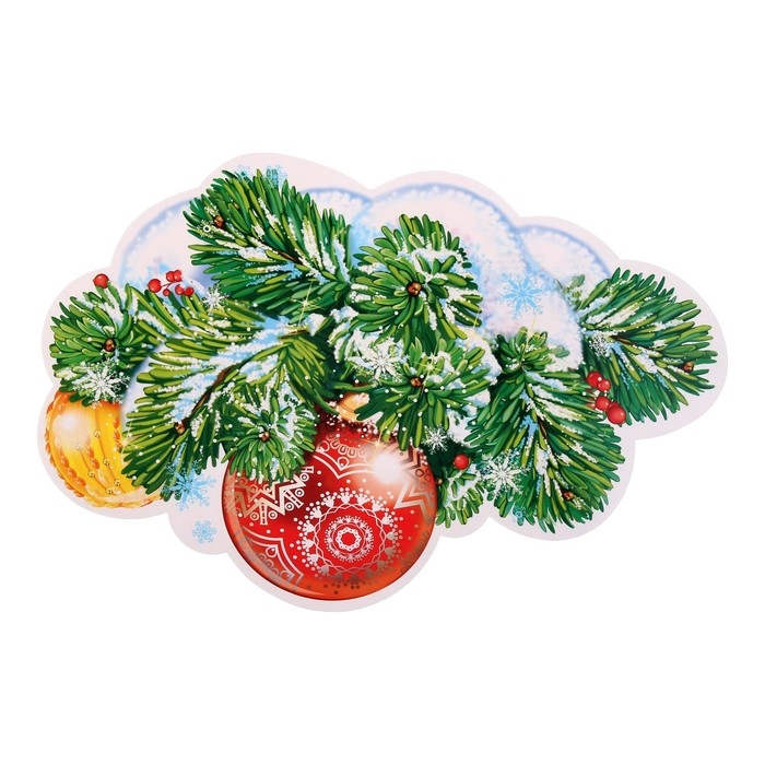 Плакат вырубной "Еловая ветка" шарики, 30х21 см