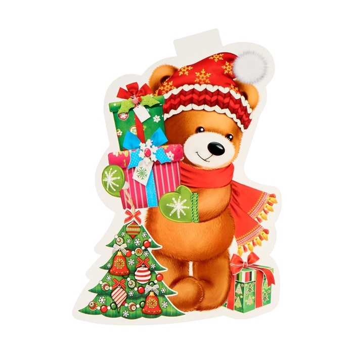 Плакат вырубной "Мишка с подарками" 35 х 41 см