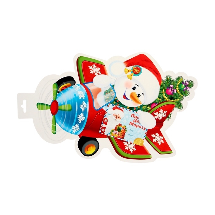Плакат вырубной "Снеговик на самолете" 35 х 41 см