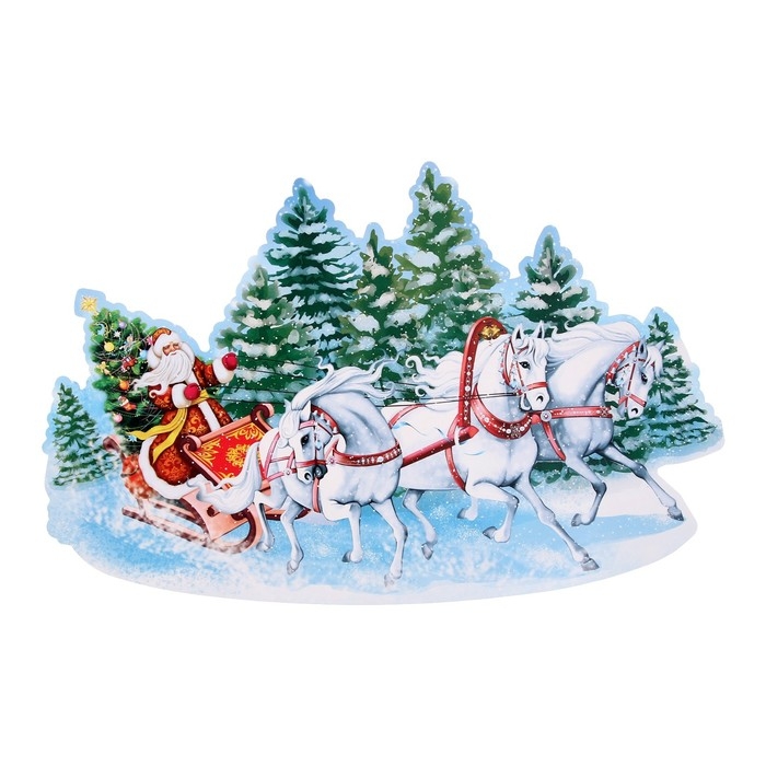 Плакат вырубной "Тройка" сани, 50х32,5 см