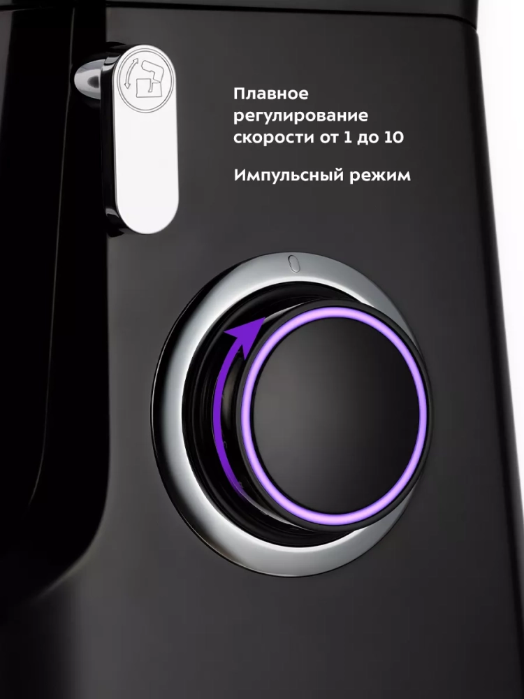 Миксер может работать в полностью автоматическом режиме. Вам достаточно только положить ингредиенты, надеть насадку и выбрать нужную скорость работы.
