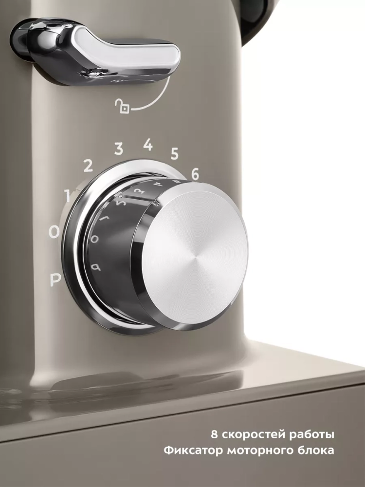 Миксер может работать в полностью автоматическом режиме. Вам достаточно только положить ингредиенты, надеть насадку и выбрать нужную скорость работы. Всего прибор имеет 8 скоростей и импульсный режим, который позволяет замешивать ингредиенты на максимальной скорости с частыми паузами.