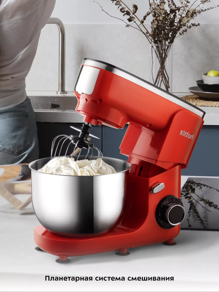 Планетарный миксер Kitfort КТ-3482 поможет вам смешать ингредиенты, взбить яичный белок или сливки, приготовить соус, крем, мусс, замесить жидкое тесто для блинов и крутое — для пельменей и пирогов.