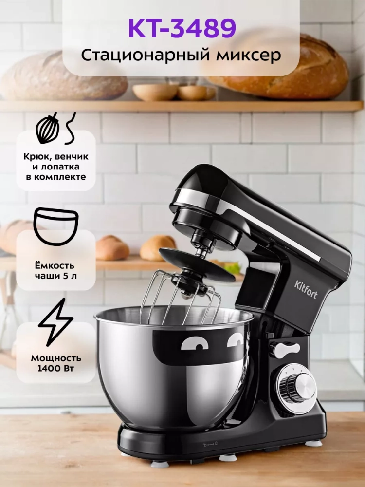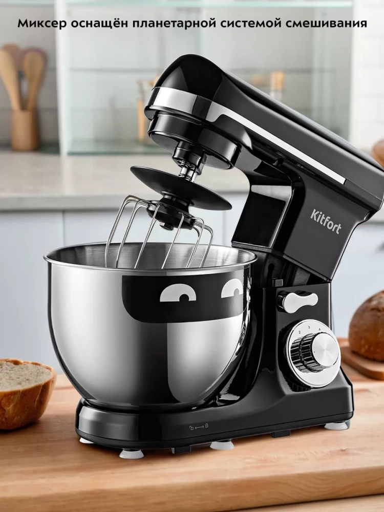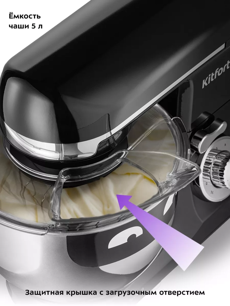 Планетарный миксер Kitfort КТ-3489 поможет вам смешать ингредиенты, взбить яичный белок или сливки, приготовить картофельное пюре, соус, крем, мусс, замесить жидкое тесто для блинов и крутое — для пельменей и пирогов. В комплекте есть три насадки и защитный кожух.