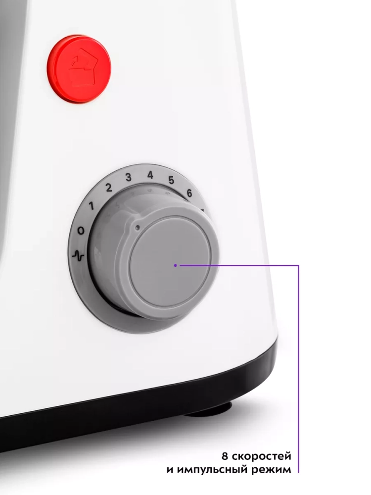 Миксер оснащен планетарной системой смешивания: во время работы насадка вращается вокруг своей оси и одновременно движется по окружности по внутреннему объему чаши, обеспечивая идеальное качество смешивания и ровную консистенцию без комков. Прорезиненные ножки с присосками прочно фиксируют миксер на столе.