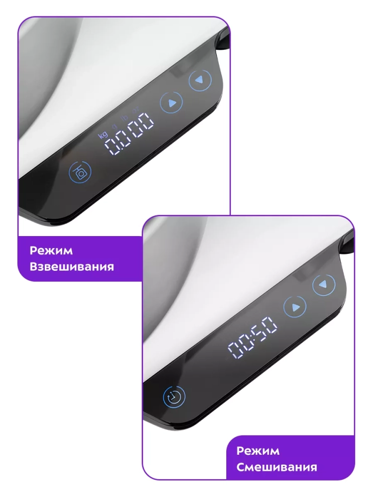 В режиме взвешивания на дисплее отобразится точный вес ингредиентов в одной из четырех единиц измерения на выбор.