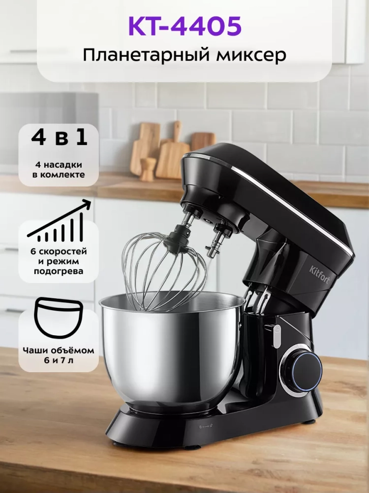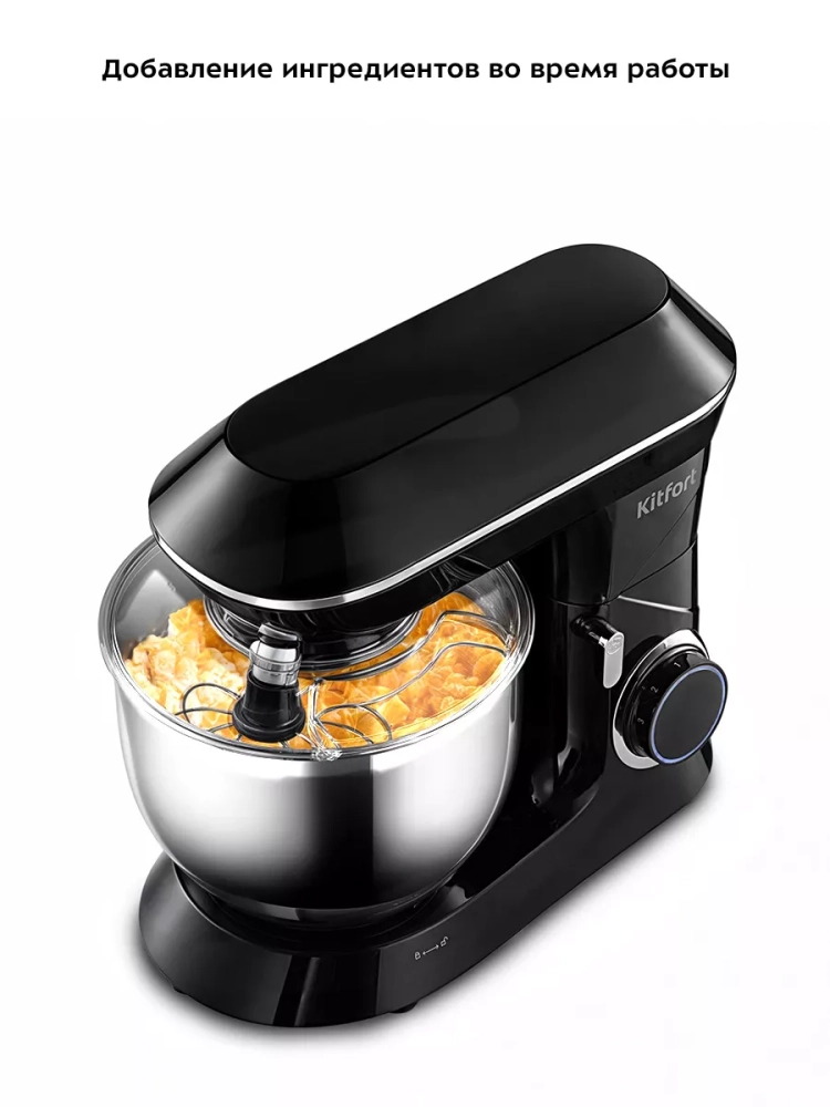 Планетарный миксер Kitfort КТ-4405 поможет вам смешать ингредиенты, взбить яичный белок или сливки, приготовить соус, крем, мусс, замесить жидкое тесто для блинов и крутое — для пельменей и пирогов.